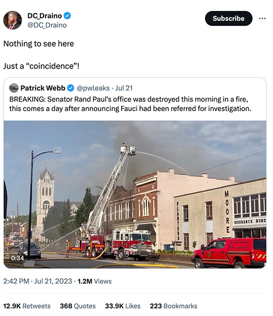 The Joe Biden fantasies made vivid by the Republican House investigations are by now something any Democratic president would have to expect. But did you see the one about how Fauci burned down Rand Paul’s office?