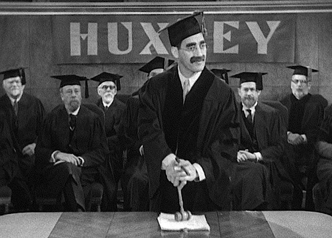 President Kanelos then asked for the credentials of Rogan and Immanuel. Co-President Weiss played video clips of Rogan’s podcast and an Immanuel video on the benefits of treating COVID-19 with hydroxychloroquine. President Kanelos asked if Co-President Weiss were serious and, on being assured that she was, repeated the question. Co-President Weiss informed President Kanelos of Rogan’s and Immanuel’s social media numbers and relationships with former U.S. President Trump. President Kanelos said he failed to see the relevance of these facts to their shared vision of higher education, and that if she considered a lack of wokeness and social media prominence sufficient reason for hiring faculty they should approach The Iron Sheik, a wrestler whose exploits he had enjoyed in his youth.