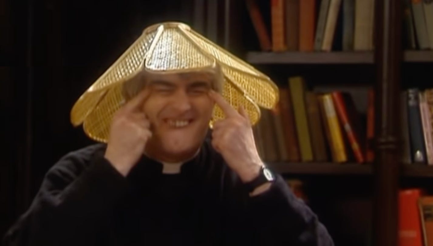 [WAX, startled and confused, looks at SCHLOCK, who pushes the sides of her own eyes up and makes buck-tooth faces like Father Ted doing an impersonation of the Chinese in “Are You All Right There Father Ted?”]