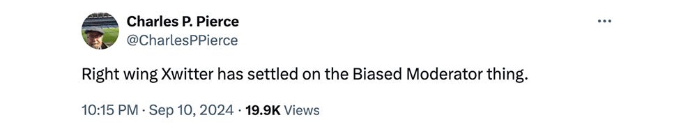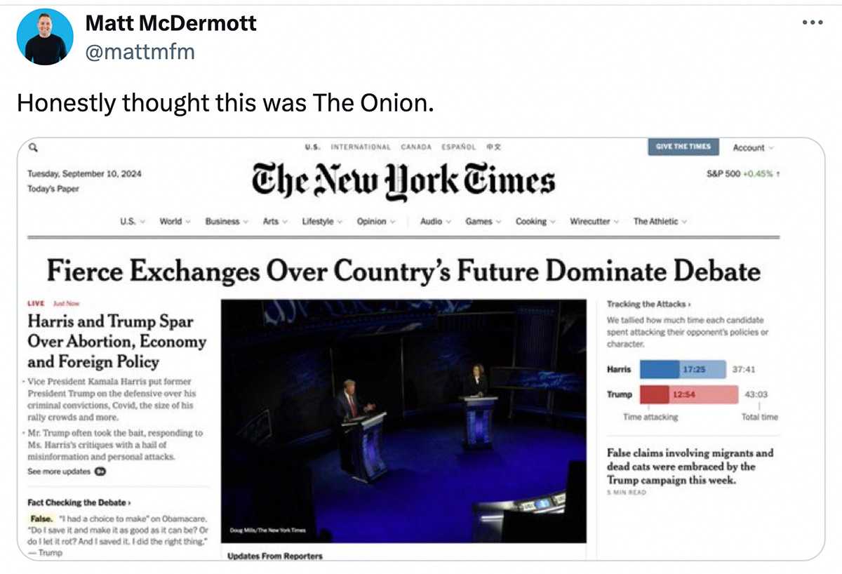 Also, I loved that Rod Dreher, the weirdest weirdo who ever weirded, conceded Harris won the debate. When you've lost Rod Dreher... you know you've entered the Twilight Zone.