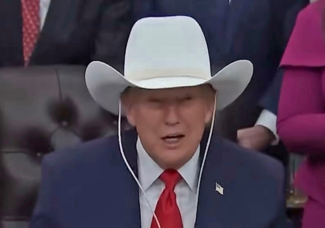 This is the signal truth of his second term. He doesn’t give a shit. You people were stupid enough to put him back in office, now you can fuck off while he rakes in bribes and kickbacks and pursues vendettas against prosecutors who attempted to hold him to account for his crimes and immigrants whose refusal to acquiesce in their illegal removal made him look bad. Plotters like Miller attach their agendas to his mood swings, but they’re not his agenda, as is shown by his incoherence when he’s called upon to explain them. He’s just doing what he feels like doing.