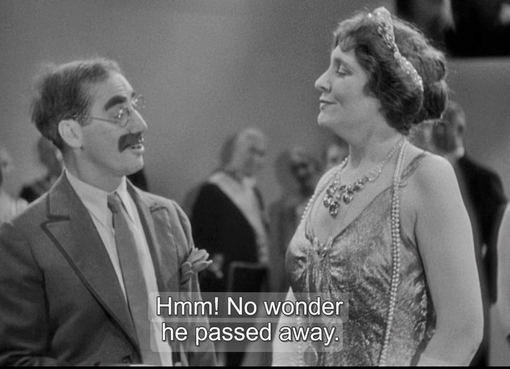 Comedy gold, Jerry! And part of the reason it’s funny is, for once, Republicans have been forced into the role of Margaret Dumont — the straight woman, as it were.