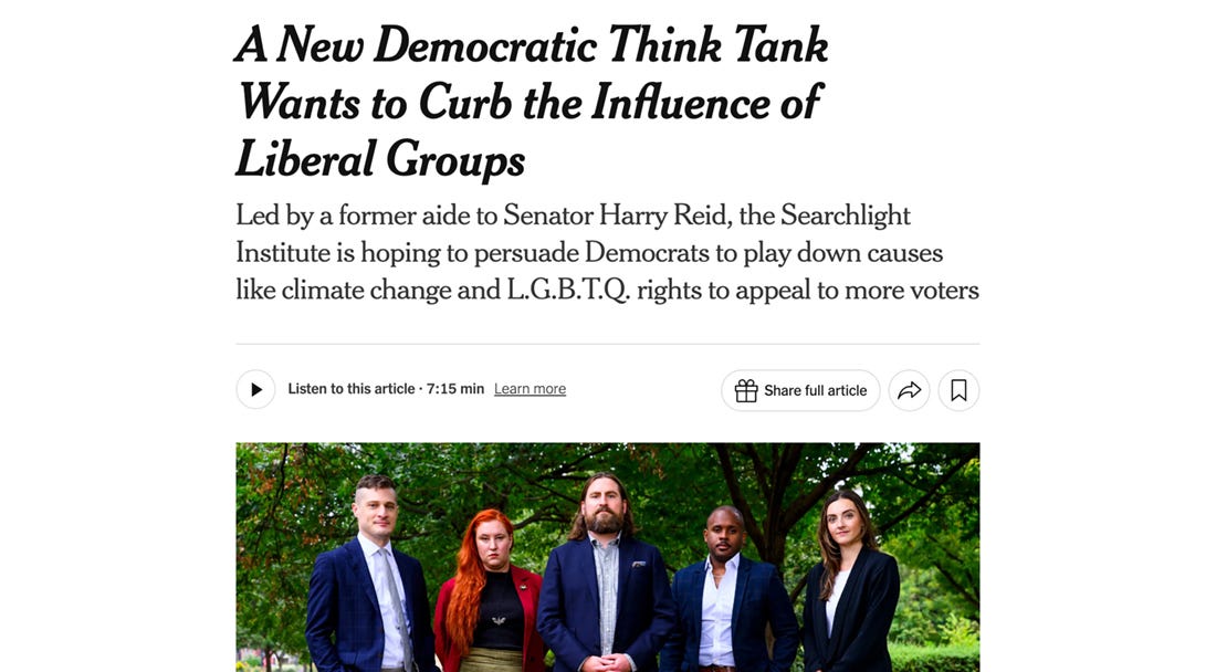 New York Times, “A New Democratic Think Tank Wants to Curb the Influence of Liberal Groups”