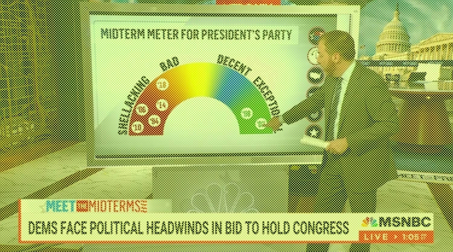 UPRIGHT: [Covered in foam, calling after him] Thank you, Senator Schumer! [To the audience] When we come back, we’ll talk to our Decision Desk team —