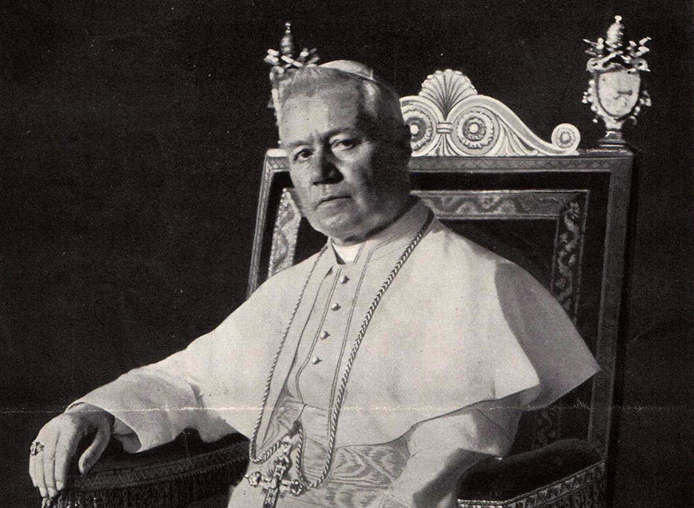 [What looks like the living room of an old-fashioned Catholic rectory. Victorian fittings and furnishings, lace curtains, plush wingback chairs with antimacassars, sofa with embroidered pillows, dark wood paneled walls hung with oil paintings of Joseph De Maistre, Father Coughlin, and Pope Pius X. Seated comfortably and having drinks are New York Times…