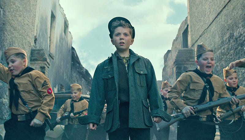 “You’re not a Nazi,” Elsa and his mother repeatedly tell Jojo — and they’re right in a few ways. For one thing he’s no good at it. (His inability to kill a rabbit with his bare hands earns him his nickname from teenage Nazis, who taunt him with it as they head off to the front; when, later, an incomplete number of them come back dazed and beaten in dirty uniforms, Jojo’s mother calls out to them, “Welcome home, boys. Go kiss your mothers.”) But being a Nazi is all Jojo’s got.