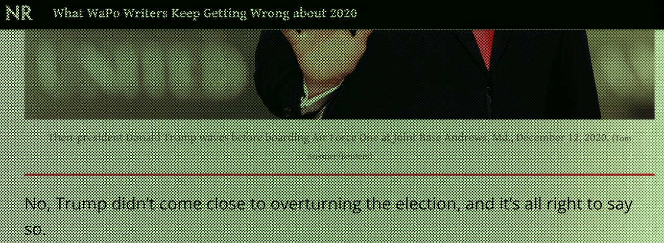 Another day, another liberal journalist pretending that Donald Trump remains a “threat” to our “democracy.” The other day it was Robert Kagan, with “Our Constitutional Crisis is Already Here”; now it’s Philip Bump with “‘The coup didn’t work’ is not a reassuring argument.”