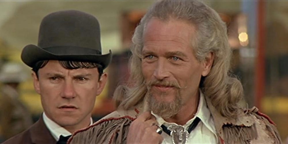 The real revelation was seeing again an Altman I’d seen when it came out: Buffalo Bill and the Indians, or Sitting Bull’s History Lesson. Back in the day I’d been disappointed in it. For one thing, he’d just come off Nashville, and this was not that; for another, I was a big fan of the Arthur Kopit play it’s based on, and kind of stuck on its idea of Buffalo Bill Cody — someone who knew better and chose against, not the thoroughly corrupt clown Paul Newman plays, merely the most exalted among an almost completely gutter-racist community of Wild West Show folk who turned the Indian genocide into Americanism for money.