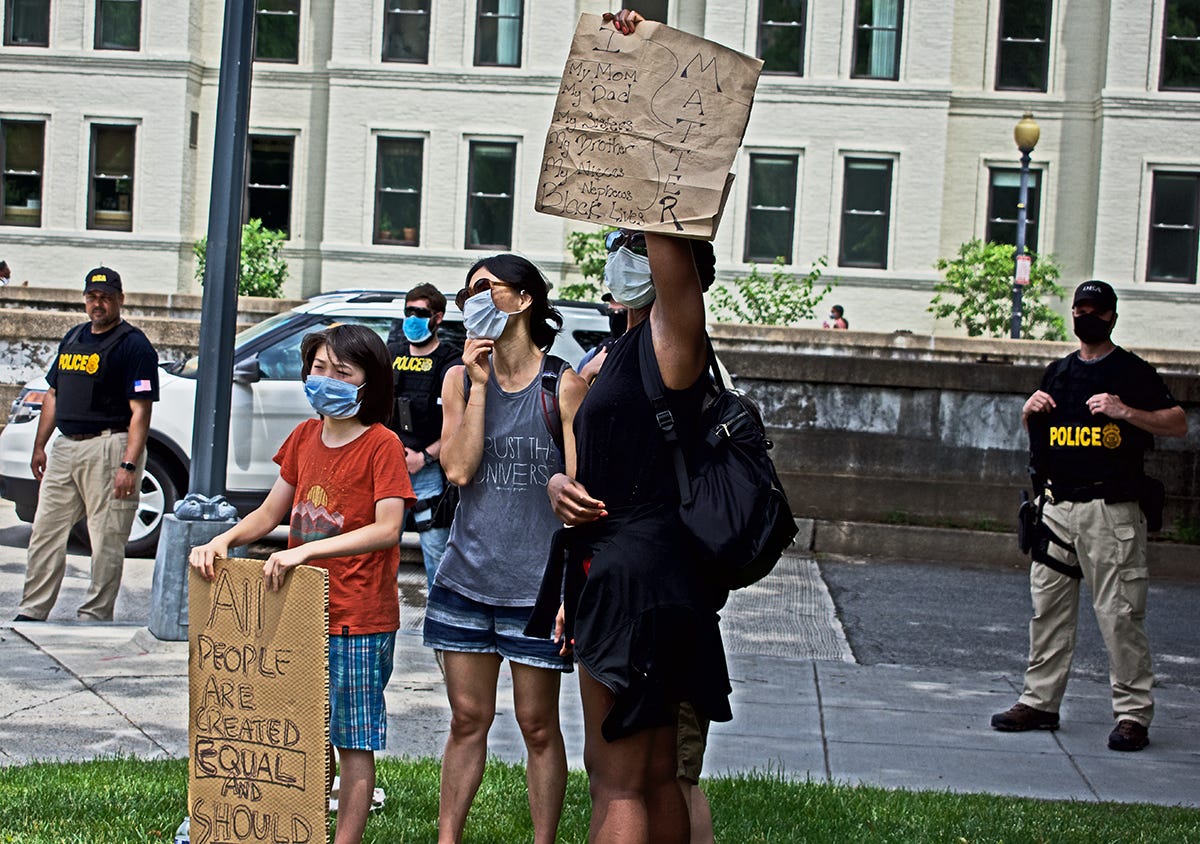DC, I can report, was packed. I heard more than one person say it was like the whole town was protesting. I know what they mean; first of all, with the pandemic still on, most people wear a mask outside, which makes us all look a little like Black Bloc. Second, I’ll wager many of us feel at least a little like Black Bloc, what with the COVID-19 pressures on our finances, our society, and our psyches. All this outrage probably would have come out in some form anyway, but the frustration of not only having to cope with Trump’s appalling bumbling of a national health crisis, but also being even less able to do anything about it than usual, got to be too much. So when one of the fetid wellsprings of Trumpism — violent racism — bubbled up stinking with the Floyd murder, we just couldn’t take it anymore.