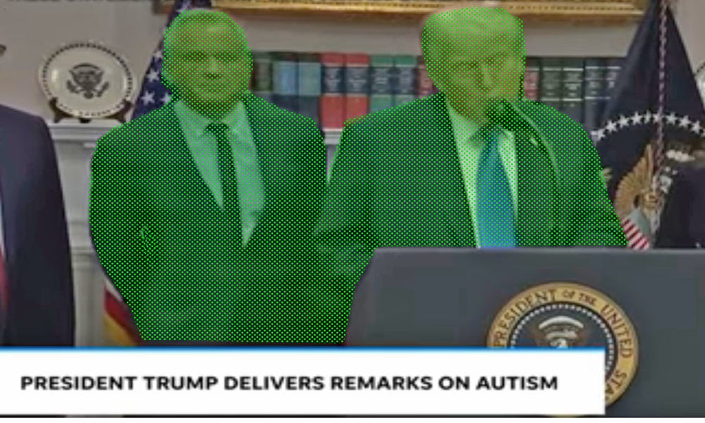 Fresh from his Charlie Kirk Grieve-a-thon, on Monday our President stood before the American people with HHS Secretary Kennedy, CMS administrator Mehmet Oz, and other national health officers to announce what they claim is a link they’d discovered between pregnant women taking Tylenol and autism, and the President said (from the transcript):