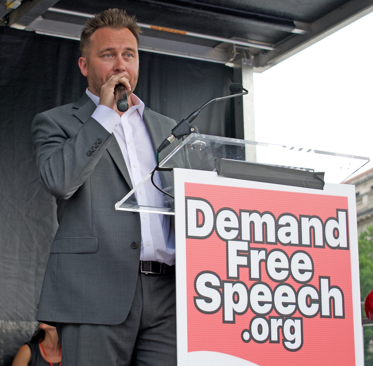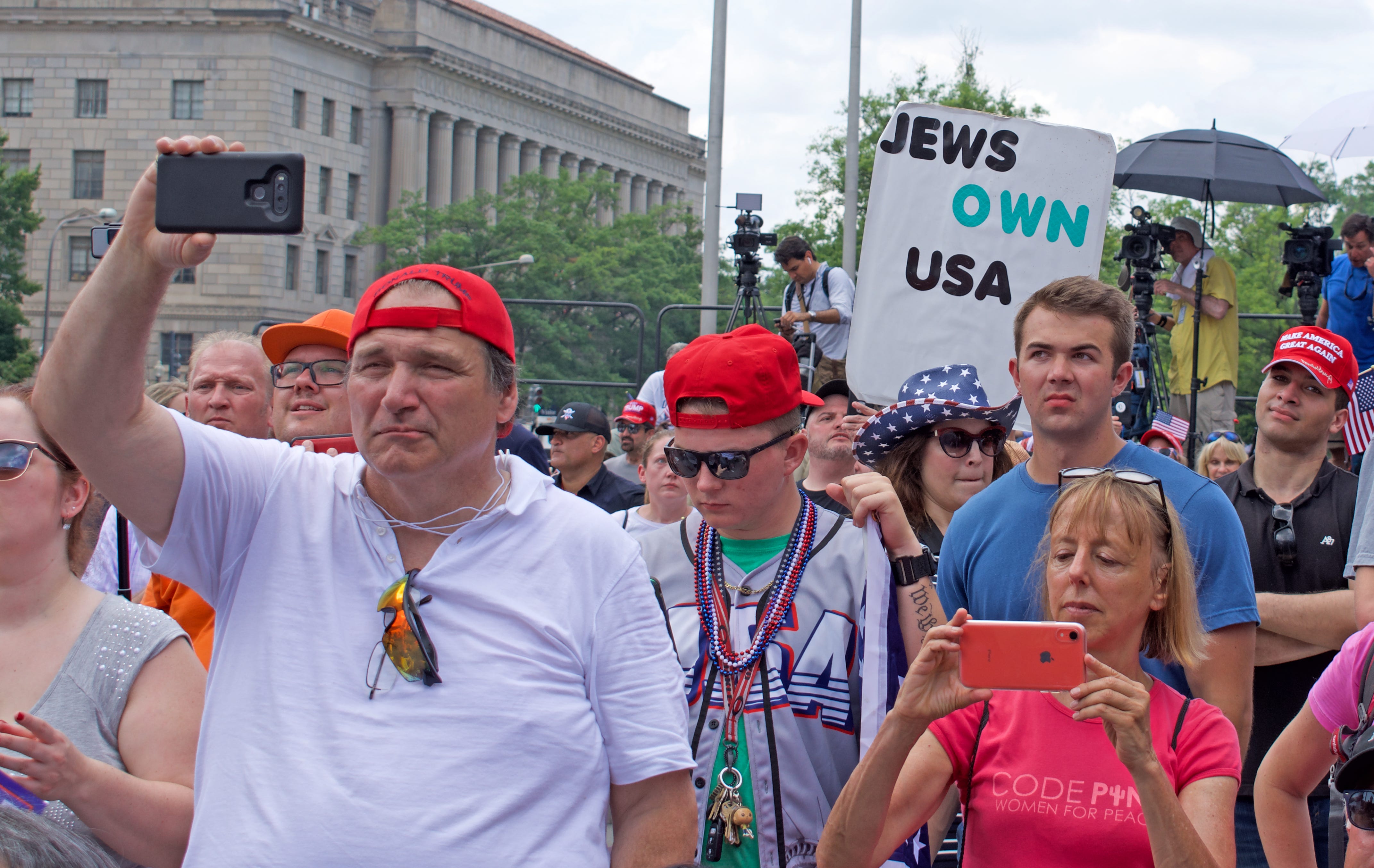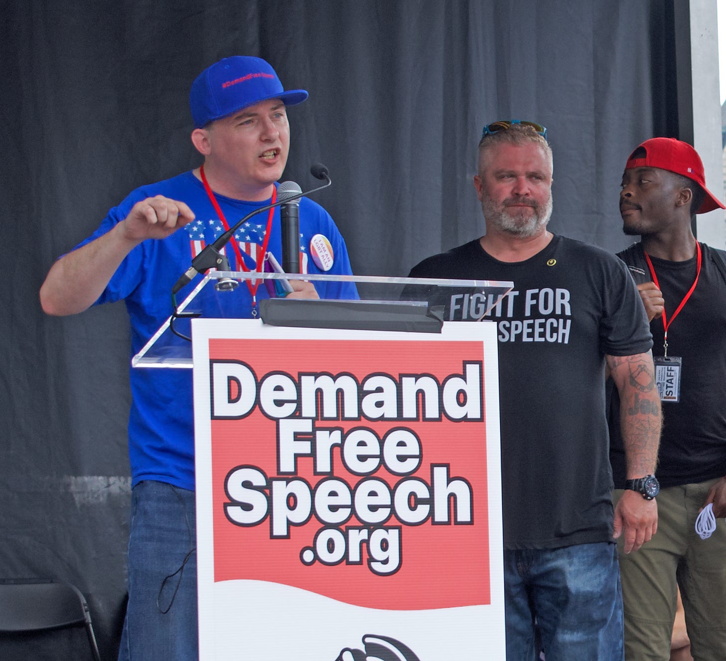 I actually recorded some of the speeches, but wasn’t fast enough to get Peter Boykin, founder and president of Gays for Trump, who told the crowd he had been “raped by social media.” He was referring to his suspension on Twitter, which would seem to have been motivated by his involvement with violent far-right creeps, but which he instead portrayed as a consequence of his conservatism; he inveighed the crowd to “lay down your digital lives” for Trump and freedom.