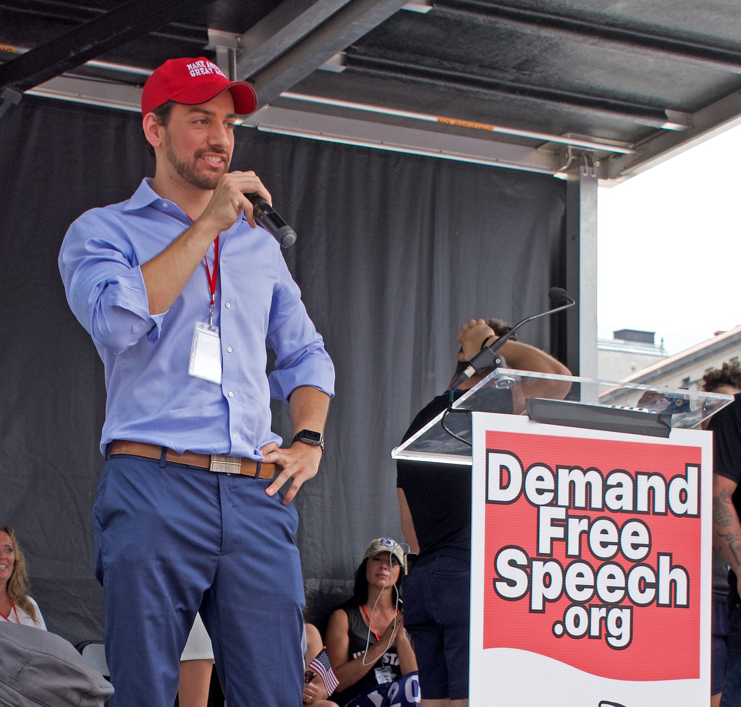Tim Fazenbaker, a glad-hander with a distinctly oily Ted Cruz vibe, came up to dangle crowd-bait bromides like “political correctness has taken over in a way like never before, we are on the brink of social war, all these leftist companies like YouTube, Twitter and Facebook are silencing conservative voices” etc. But the crowd was losing interest in opening acts by then, so Fazenbaker yelled things like “Sharia law has come here! Think about that!” and warned that “we’re gonna turn into Canada.” That didn’t do it either, though when he announced that he was running for Congress from “the great state of Maryland” he got some hoots. But it bodes ill that the former failed write-in candidate chose this event as his launchpad, and he really should have spelled his name at least once.