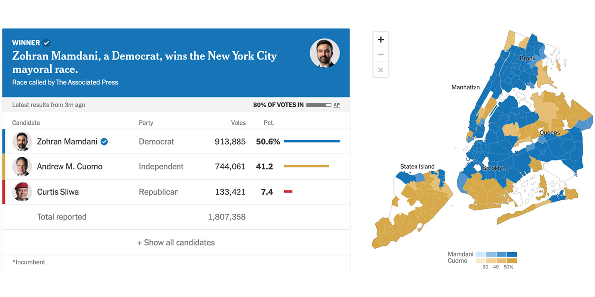 I don't expect anybody in the Prestige Press to reckon with the disgusting Islamophobia of the closing weeks of the campaign. I don't even expect them to change their tune -- just this morning a NYT hed described Mamdani as being "anointed" rather than elected.